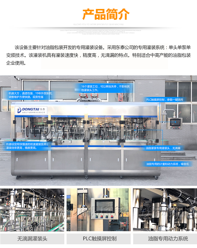 3、摒棄了傳統夾瓶口灌裝方式,采用下潛式灌裝下料口設計,邊灌邊提,避免了灌裝速度快產生細小水珠噴濺污染瓶口的現象產生。配合多段式快慢速灌裝,可以保障高速灌裝時全速灌裝,又可有效解決氣壓過高快速灌裝時泡沫溢瓶現象,變頻控制更,自我保護更安全,穩(wěn)定,延長設備使用壽命。