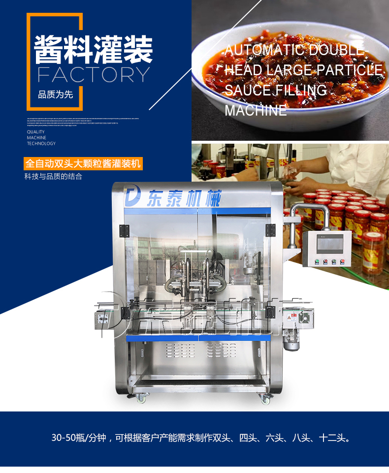醬料行業(yè)市場日趨龐大,有非常的工作效率,來滿足客戶需求就顯的十分重要了,我們公司便能給您帶來這種的幫助,這款辣椒醬灌裝機灌裝機身為公司新生產制造的灌裝機在行業(yè)市場上發(fā)揮了重要的作用,辣椒醬灌裝機是集光,機,電,氣于一體,選用活塞式定量原理,灌裝精確度高,使用比較簡單,維護非常方便,設備主要材質:選用SUS3